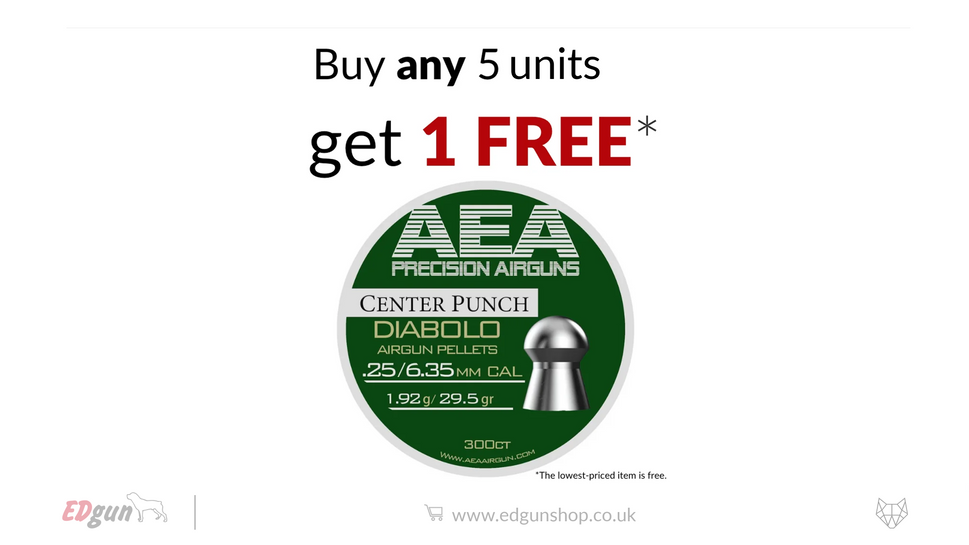 EDgun Premium Airgun Pellets - Cal .22 (5.5mm) | 1.65g (25.40gr)x1EDgun Premium Airgun Pellets - Cal .22 (5.5mm) | 1.65g (25.40gr)x4 + 1 for free